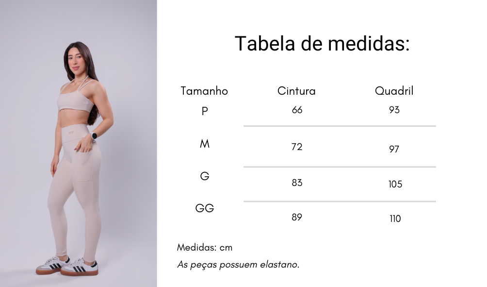 A legging Skin é a legging que faltava no seu armário! Com uma modelagem incrível, não possui costura na parte frontal, ou seja, não marca nada. Garantindo conforto, segurança e estilo para o seu treino. Além de possuir bolso nas laterais, que cabe celular, fone, chave, anéis e muito mais.