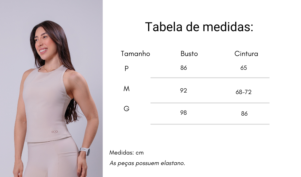Ideal para completar looks casuais ou esportivos, essa regata oferece conforto e estilo em um só pacote. Feita com tecido duplo (forrada com o próprio material), ela garante opacidade total, sem marcar a pele nem deixar transparente, proporcionando a sustentação perfeita que toda mulher merece.