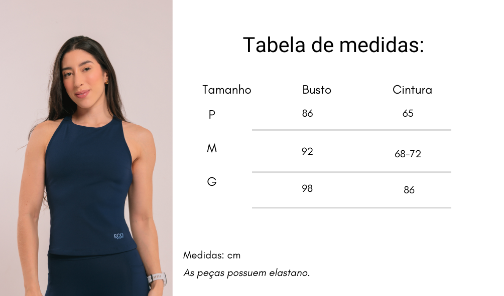 Ideal para completar looks casuais ou esportivos, essa regata oferece conforto e estilo em um só pacote. Feita com tecido duplo (forrada com o próprio material), ela garante opacidade total, sem marcar a pele nem deixar transparente, proporcionando a sustentação perfeita que toda mulher merece.