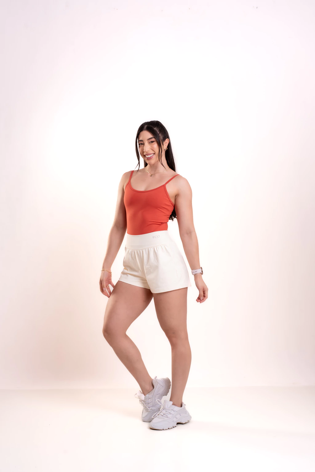 Conta com alças reguláveis, que permitem um ajuste personalizado e ainda possui um comprimento ideal para quem prefere treinar com mais cobertura, sem abrir mão da leveza.